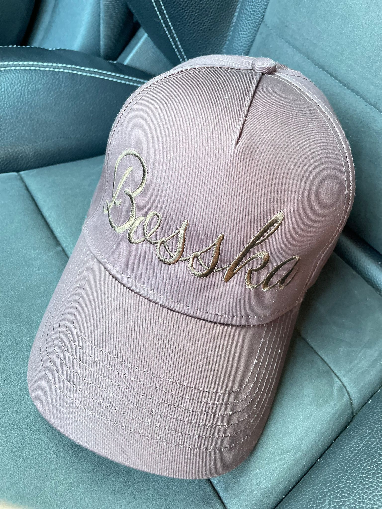 Czapka z daszkiem BOSSKA – czekoladowa ze złotym napisem