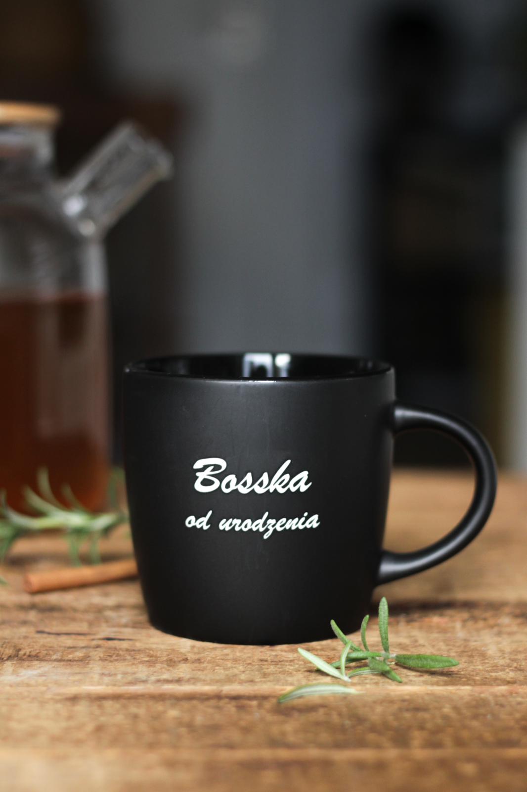 Porcelanowy kubek w kolorze czarnym dla Bosskiej kobiety.